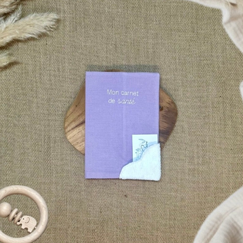 Protège carnet de santé brodé avec poche intégré sur le devant.